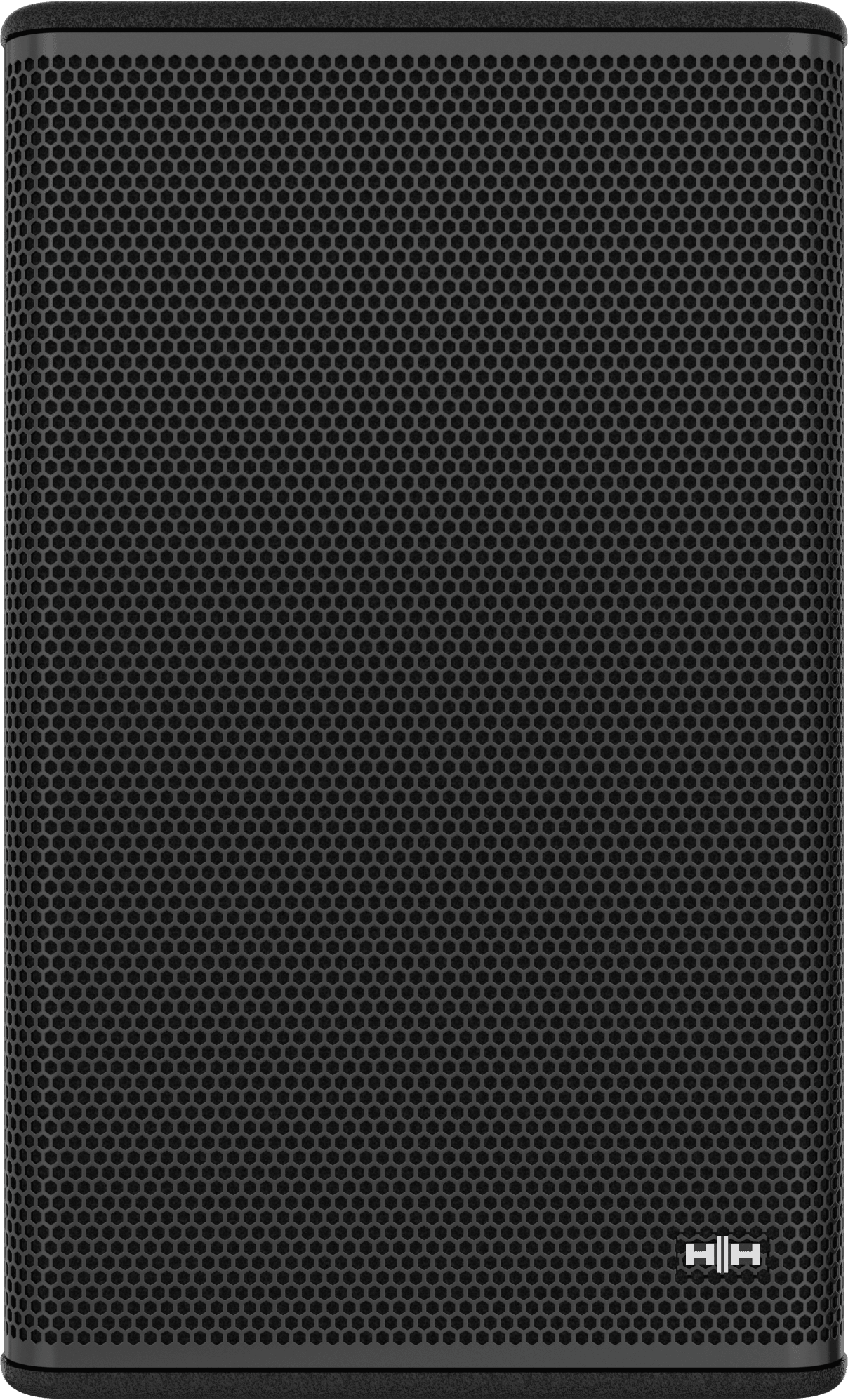 The wooden enclosure is composed of robust plywood, finished with black paint and fitted with a hexagonal mesh steel grille with acoustic foam backing.