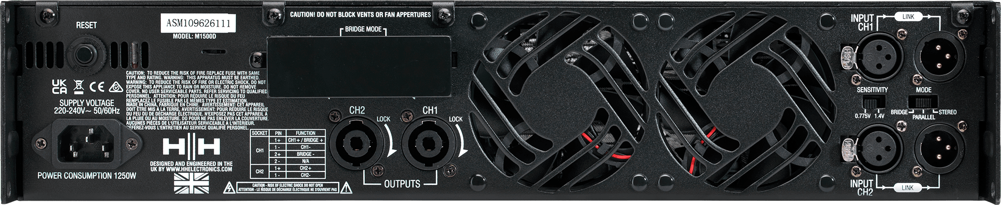 HH M-Series power amplifiers are high power, 2U rack amplifers designed to provide maximum performance for demanding applications . Three models are available all featuring heavy duty low noise toroidal power supplies and rugged construction. Suitable for anywhere you need high fidelity, high power amplification