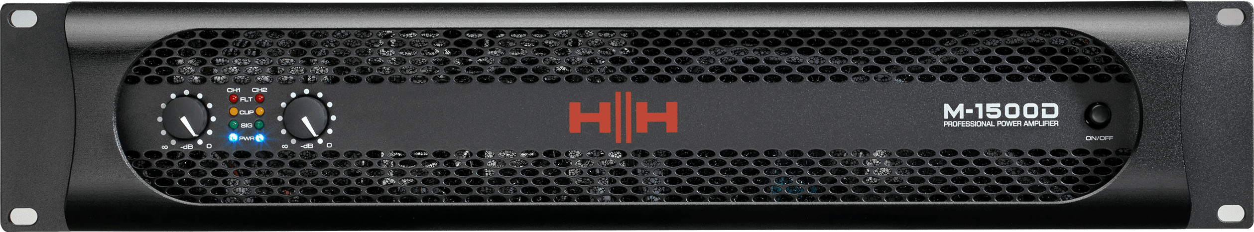 HH M-Series power amplifiers are high power, 2U rack amplifers designed to provide maximum performance for demanding applications. Three models are available all featuring heavy duty low noise toroidal power supplies and rugged construction.